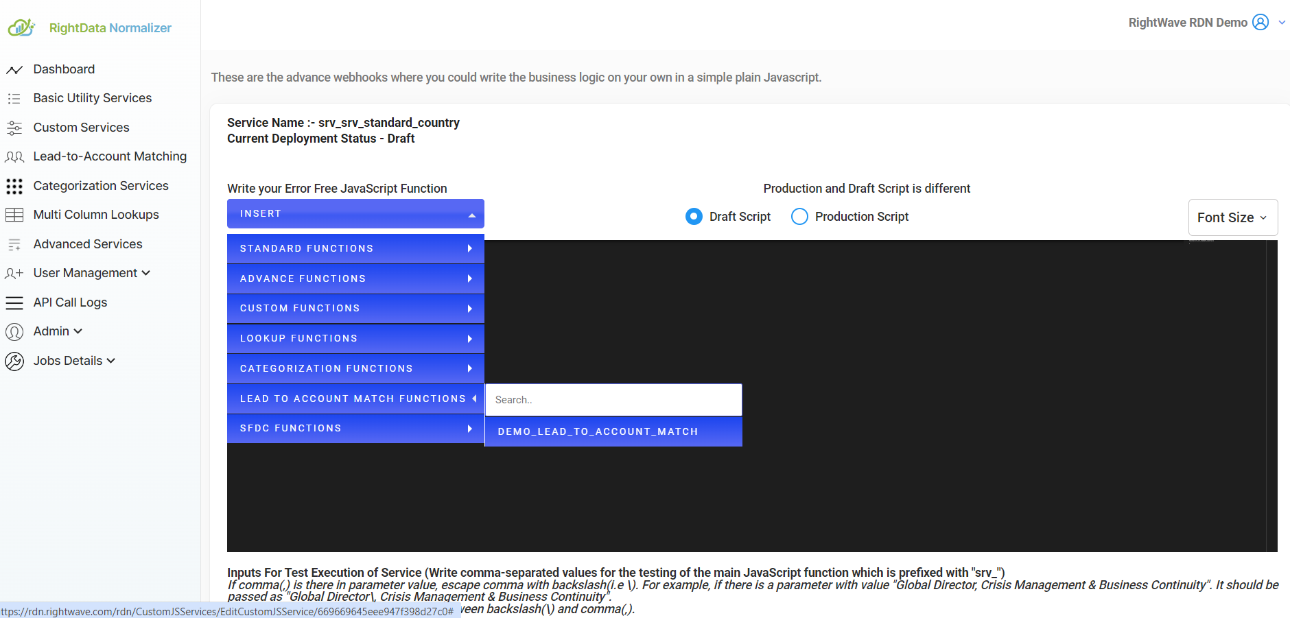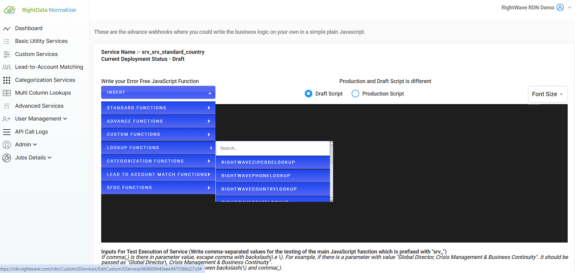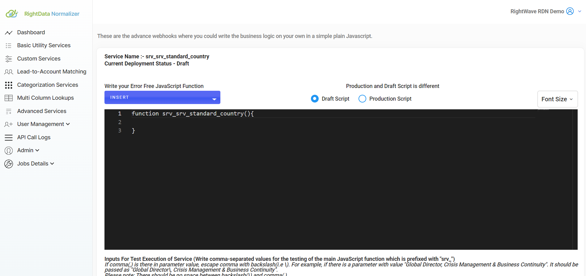 3.1 Draft Script: The Draft Script allows you to make edits and modifications to your code. It is typically used during development or testing phases and may contain unfinished or experimental changes. As such, it may include errors in the code since updates are still being made. You need to select Draft mode to make any changes to the Production script. Once you have made and tested the necessary changes, you will need to redeploy the script to the production environment.