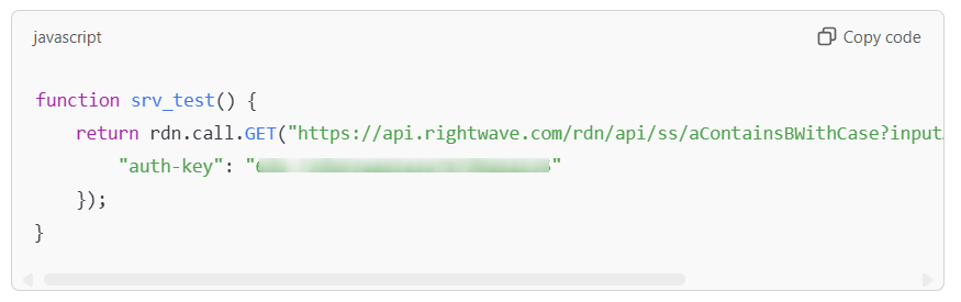 return rdn.call.GET(“https://api.rightwave.com/rdn/api/ss/aContainsBWithCase?inputA=news paper&inputB=paper”, {