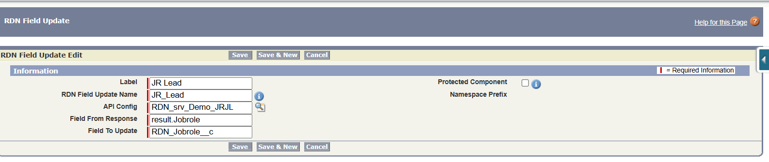 | Run_in_Batch__c | RUN this configuration when called from manual execution.RDNAPIUtils.runCallBatch(‘lead’,query); | Checkbox |